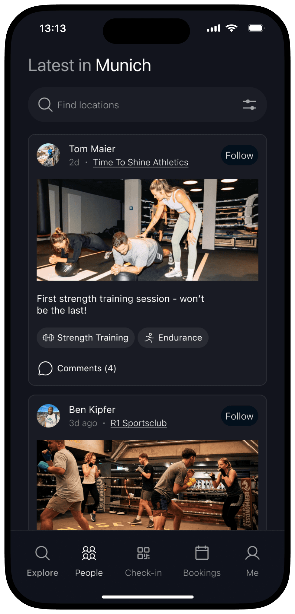 A new community feed to discover, follow, and interact with others attending events or sharing their fitness journey